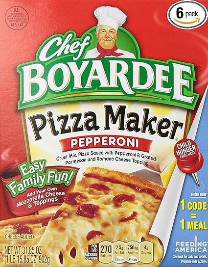 I was originally taught to use this pizza kit. It comes in a box and is pretty cheap, but I only needed the dry ingredients in it to make the crust. I didn't use the cheese or the sauce or anything so it got to the point where I just started buying the cheap packs of pizza crust mix that usually cost under $1 and bought everything separate. If you are making your pizza with tomato sauce and you want pepperoni on it, then your better off buying this box and just buying some more toppings and some cheese to go with it.